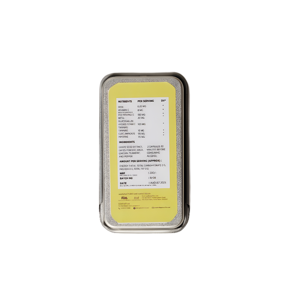 Hangover Fix is an all-natural recovery formula designed to help you bounce back after a night out. It combines Grape Seed Extract, Dates Powder, Amla, Chicory, Turmeric, and Pepper to deliver a powerful dose of antioxidants, supporting vascular health and reducing inflammation. Rich in fiber, it promotes healthy digestion and gut health while providing calming effects on the digestive system. Turmeric’s curcumin adds potent anti-inflammatory and antioxidant benefits, while pepper enhances nutrient absorption for faster recovery. Hangover Fix boosts immunity, improves digestion, and supports overall well-being, making it the perfect solution for quickly regaining balance and energy after a hangover.